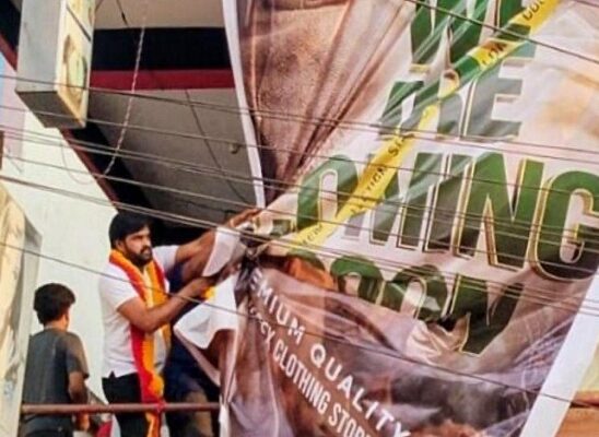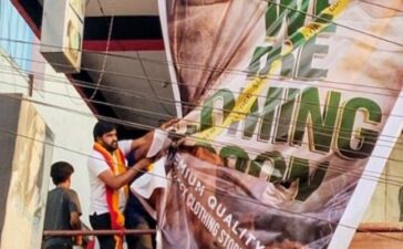 ಕುಶಾಲನಗರ (ರಘುಹೆಬ್ಬಾಲೆ): ಪಟ್ಟಣದ ರಥಬೀದಿಯಲ್ಲಿ ಬಟ್ಟೆ ಅಂಗಡಿಗೆ ಸಂಬಂಧಿಸಿದ ಬ್ಯಾನರ್ ಸಂಪೂರ್ಣ ಆಂಗ್ಲಭಾಷೆಯಲ್ಲಿರುವುದನ್ನು ಗಮನಿಸಿದ ಹೆಚ್.ಶಿವರಾಮೇಗೌಡರ ಕರ್ನಾಟಕ ರಕ್ಷಣಾ ವೇದಿಕೆ ಜಿಲ್ಲಾಧ್ಯಕ್ಷ ಡಾ.ಬಿ.ಎ.ದಿನೇಶ್ ಶೆಟ್ಟಿ ಮತ್ತು ಪ್ರಮುಖರು...