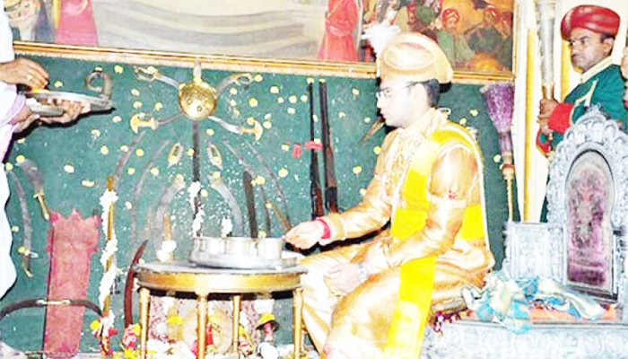 ಇನ್ನು ಐತಿಹಾಸಿಕ ಅರಮನೆಯಲ್ಲಿ ಆಯುಧ ಪೂಜಾ ವಿಧಿವಿಧಾನಗಳು ಕೂಡ ನಡೆಯುತ್ತವೆ. ಆಯುಧ ಪೂಜಾ ದಿನ ಯದುವೀರ ಕೃಷ್ಣದತ್ತ ಚಾಮರಾಜ ಒಡೆಯರ್ ಪ್ರಾತಃಕಾಲದಿಂದಲೇ ಪೂಜಾ ಕಾರ್ಯ ಆರಂಭಿಸಿ ಮಧ್ಯಾಹ್ನದವರೆಗೂ ನಡೆಸುತ್ತಾರೆ. ಅರಮನೆಯ ಆವರಣದಲ್ಲಿ ಆಯುಧಪೂಜೆಯನ್ನು ರಾಜಪರಂಪರೆಯಂತೆ ಆರಂಭಿಸಿ ಮೊದಲು ಸಾಲಿಗ್ರಾಮ ಪೂಜೆ ನೇರವೇರಿಸಿ. ಆ ನಂತರ ಅರಮನೆ ಆವರಣದಲ್ಲಿರುವ ಕೋಡಿ ಸೋಮೇಶ್ವರ ದೇವಾಲಯಕ್ಕೆ ಚಿನ್ನದ ಖಡ್ಗ, ಪಿಸ್ತೂಲು ಸೇರಿದಂತೆ ಅರಮನೆಯ ಆಯುಧಗಳನ್ನು ಚಿನ್ನಲೇಪಿತ ಪಲ್ಲಕ್ಕಿಯಲ್ಲಿ ಕೊಂಡೊಯ್ದು ಪುರಾತನ ಬಾವಿಯ ಗಂಗೆಯಿಂದ ಶುಚಿಗೊಳಿಸಿ ಬಳಿಕ ಪೂಜೆ ಮಾಡಲಾಗುತ್ತದೆ. ಇದೇ ಸಮಯದಲ್ಲಿ ಅರಮನೆಯಲ್ಲಿ ಮಹಾರಾಜ ಯದುವೀರ ಕೃಷ್ಣದತ್ತ ಚಾಮರಾಜ ಒಡೆಯರ್ ಅವರು ವಿವಿಧ ಪೂಜೆ ಹೋಮ ಹವನಗಳನ್ನು ಮಾಡುತ್ತಾರೆ.