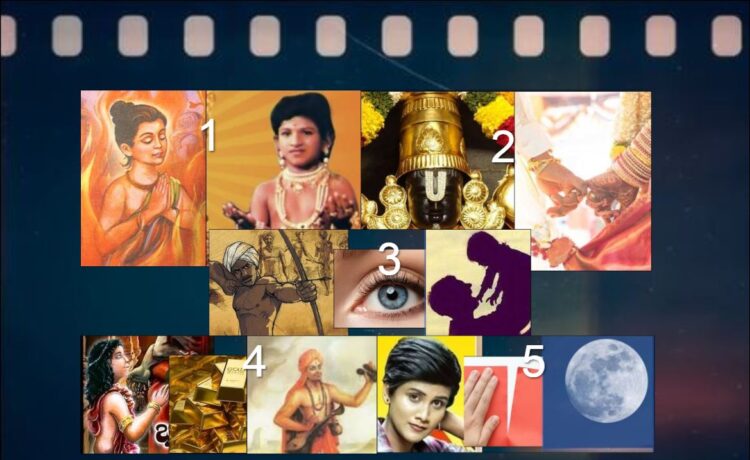 ಉತ್ತರಗಳು: ಭಕ್ತ ಪ್ರಹ್ಲಾದ, ಶ್ರೀನಿವಾಸ ಕಲ್ಯಾಣ, ಬೇಡರ ಕಣ್ಣಪ್ಪ, ಭಕ್ತ ಕನಕದಾಸ, ಸತ್ಯ ಹರಿಶ್ಚಂದ್ರ