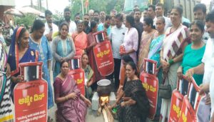 ಕೇಂದ್ರದಲ್ಲಿ ಬಿಜೆಪಿ ಅಧಿಕಾರಕ್ಕೆ ಬಂದಾಗಿನಿಂದಲೂ ಜನವಿರೋಧಿ, ಸಂವಿಧಾನ ವಿರೋಧಿ, ರೈತವಿರೋಧಿ ನೀತಿಗಳನ್ನು ಜಾರಿಗೆ ತರುತ್ತಿದೆ. ಅಗತ್ಯ ವಸ್ತುಗಳ ಜೊತೆ ಎಲ್ಪಿಜಿ ಸಿಲಿಂಡರ್ ಬೆಲೆಯನ್ನು ನಿರಂತರವಾಗಿ ಏರಿಕೆ ಮಾಡುತ್ತಿದೆ ಎಂದು ಪ್ರತಿಭಟನಾನಿರತರು ಆಕ್ರೋಶ ವ್ಯಕ್ತಪಡಿಸಿದರು. ಸರ್ಕಲ್ ನಲ್ಲಿ ಸೌದೆ ಯಿಂದ ಅಡುಗೆ ಮಾಡುವ ಮೂಲಕ ಅಣಕು ಪ್ರದರ್ಶನ ನೀಡಿ ಮಹಿಳಾ ಪ್ರತಿಭಟನಾಕಾರರು ಅಸಮಾಧಾನ ವ್ಯಕ್ತಪಡಿಸಿದರು.