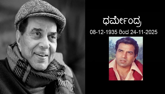 ಜವರಾಯನ ಕರೆಯಂತೆ 300ಕ್ಕೂ ಹೆಚ್ಚು ಚಿತ್ರಗಳಲ್ಲಿ ನಟಿಸಿದ್ದ ಸೂಪರ್ ಹೀರೋ ಧರ್ಮೇಂದ್ರ ವಯೋಸಹಜ ಅನಾರೋಗ್ಯದಿಂದ ಆಸ್ಪತ್ರೇಲಿ ಚಿಕಿತ್ಸೆ ಫಲಿಸದೇ ದಿನಾಂಕ 24.11.2025 ಸೋಮವಾರ ಮುಂಬೈನ ಲೋನಾವಾಲದ ಫಾರ್ಮ್ ಹೌಸ್ ನಲ್ಲಿ ದೈವಾಧೀನರಾದರು.ಇವರ ಮೊದಲ ಪತ್ನಿ ಶ್ರೀಮತಿ ಪ್ರಕಾಶ್ ಕೌರ್ 2.11.1982ರಲ್ಲೇ ನಿಧನರಾಗಿದ್ದರು. ಧರ್ಮೇಂದ್ರ ಅವರು ಶೋಲೆ ಸಿನಿಮಾದ ಮೂಲಕ ಕನ್ನಡಿಗರ ಮನಸೆಳೆದಿದ್ದರು. ಆ ಸಿನಿಮಾ ಬಾಲಿವುಡ್ ದಾಟಿ ಎಲ್ಲೆಡೆ ಗಮನಸೆದಿತ್ತು. ಅವತ್ತಿನ ಬಿಗ್ ಬಜೆಟ್ ನ ಸಿನಿಮಾ ಇದಾಗಿತ್ತು.