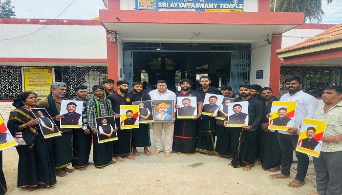 ನಗರದ ಚಾಮುಂಡಿ ಬೆಟ್ಟದ ತಪ್ಪಲಿನಲ್ಲಿ ಇರುವ ಅಯ್ಯಪ್ಪ ಸ್ವಾಮಿ ದೇವಸ್ಥಾನದಲ್ಲಿ ಅಯ್ಯಪ್ಪ ಮಾಲಾಧಾರಿಗಳು ಅಖಿಲ ಕರ್ನಾಟಕ ಡಿ.ಕೆ.ಶಿವಕುಮಾರ್ ಅಭಿಮಾನಿ ಬಳಗದ ವತಿಯಿಂದ ಅಧ್ಯಕ್ಷ ಜಿ.ರಾಘವೇಂದ್ರ ನೇತೃತ್ವದಲ್ಲಿ ಡಿ.ಕೆ.ಶಿವಕುಮಾರ್ ಮುಖ್ಯಮಂತ್ರಿಯಾಗಲೆಂದು ವಿಶೇಷ ಪೂಜೆ ಸಲ್ಲಿಸಿ ಪ್ರಾರ್ಥಿಸಿದರು. ಮಾಲಾಧಾರಿಗಳು ಡಿ.ಕೆ.ಶಿವಕುಮಾರ್ ಅವರ ಭಾವಚಿತ್ರ ಹಿಡಿದು ಜಪ, ಭಜನೆ, ಶ್ಲೋಕ ಪಠಣ ಮಾಡಿ, ಡಿ.ಕೆ.ಶಿವಕುಮಾರ್ ಅವರ ರಾಜಕೀಯ ಜೀವನ ಸುಗಮವಾಗಲಿ, ಅಡೆತಡೆಗಳು ದೂರವಾಗಲಿ ಎಂದು ಪ್ರಾರ್ಥಿಸಿದರು. ಮಂಡಲ ಪೂಜೆ ಪೂರ್ಣಗೊಂಡ ನಂತರ ಶಬರಿಮಲೆ ಯಾತ್ರೆಯಲ್ಲಿ ಕೂಡ ಡಿ.ಕೆ.ಶಿವಕುಮಾರ್ ಸಿಎಂ ಆಗಲೆಂದು ವಿಶೇಷ ಪ್ರಾರ್ಥನೆ ಸಲ್ಲಿಸಲಾಗುತ್ತದೆ ಎಂದು ಮಾಹಿತಿ ನೀಡಿದರು.