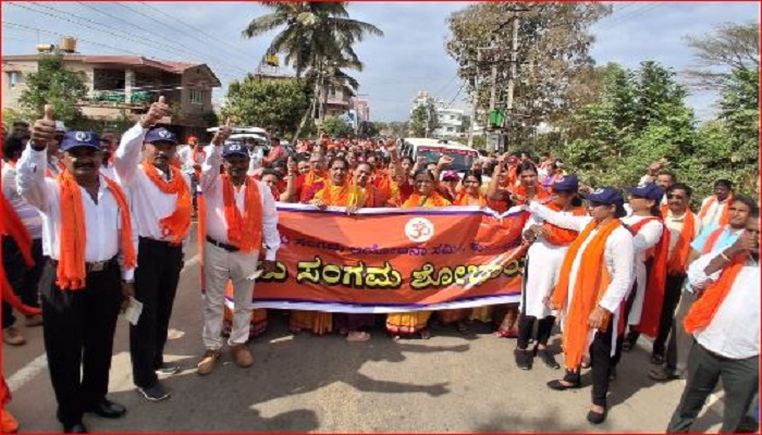 ಹಿಂದೂ ಸಂಗಮ ಆಯೋಜನಾ ಸಮಿತಿ ವತಿಯಿಂದ ಭಾನುವಾರ ಹಿಂದೂ ಸಂಗಮ ಬೃಹತ್ ಶೋಭಾಯಾತ್ರೆ ಅಂಗವಾಗಿ ಖಾಸಗಿ ಬಸ್ ನಿಲ್ದಾಣದ ಆವರಣದಲ್ಲಿ ಏರ್ಪಡಿಸಿದ್ದ ಸಭಾ ಕಾರ್ಯಕ್ರಮದಲ್ಲಿ ದಿಕ್ಸೂಚಿ ಭಾಷಣ ಮಾಡಿದ ಅವರು, ಹಿಂದೂಗಳು ಒಗ್ಗೂಡಿ ಸಂಘಟಿತರಾಗುವ ಮೂಲಕ ಹಿಂದೂ ಸಂಸ್ಕೃತಿ, ಪರಂಪರೆಗಳನ್ನು, ಕೌಟುಂಬಿಕ ಮೌಲ್ಯಗಳನ್ನು ಸಂರಕ್ಷಿಸುವ ಈ ಮೂಲಕ ಹಿಂದೂ ಸಮಾಜದ ಬಲವರ್ಧನೆಗೆ ಶ್ರಮಿಸಬೇಕೆಂದು ಎಂದರು.