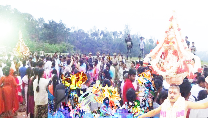ಆ ನಂತರ ಪಾರ್ವತಿ ವಿವಿಧ ದೇವಿಯರ ಅವತಾರಗಳಲ್ಲಿ ತೆರಳಿ ದುಷ್ಟ ರಾಕ್ಷಸರನ್ನು ಸಂಹರಿಸಿದಳಂತೆ. ಹಾಗಾಗಿಯೇ ಪಾರ್ವತಿ ಅವತಾರದ ನಾಲ್ಕು ಶಕ್ತಿದೇವತೆಗಳು ಊರೊಳಗೆ ಅಂದರೆ ಮಹಾವಿಷ್ಣುವಿನ ಸ್ಥಾನಕ್ಕೆ ಬರುವ ಸಂಪ್ರದಾಯ ಜಾರಿಗೆ ತರಲಾಯಿತು. ಆದರೆ ಆ ಕಾಲದಲ್ಲಿ ನಗರದಲ್ಲಿ ಮಹಾವಿಷ್ಣುವಿನ ದೇವಾಲಯ ಇಲ್ಲದೆ ಇದ್ದುದರಿಂದಾಗಿ ನಗರದ ದೊಡ್ಡಪೇಟೆಯಲ್ಲಿ ಪೂಜಾ ಮಂದಿರವನ್ನು ನಿರ್ಮಿಸಿ ಅಲ್ಲಿ ರಾಮನ ಚಿತ್ರಪಟವನ್ನಿರಿಸಿ ಪೂಜಿಸಲಾಯಿತು.