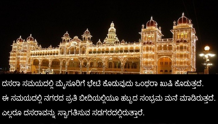 ದಸರಾ ಸಮಯದಲ್ಲಿ ಮೈಸೂರಿಗೆ ಭೇಟಿ ಕೊಡುವುದು ಒಂಥರಾ ಖುಷಿ ಕೊಡುತ್ತದೆ. ಈ ಸಮಯದಲ್ಲಿ ನಗರದ ಪ್ರತಿ ಬೀದಿಯಲ್ಲಿಯೂ ಹಬ್ಬದ ಸಂಭ್ರಮ ಮನೆ ಮಾಡಿರುತ್ತದೆ. ಎಲ್ಲರೂ ದಸರಾವನ್ನು ಸ್ವಾಗತಿಸುವ ಸಡಗರದಲ್ಲಿರುತ್ತಾರೆ. ಹಗಲೆಲ್ಲ ದೂರದಿಂದ ಬಂದಿರುವ ಪ್ರವಾಸಿಗರು ಕಾಣಿಸಿದರೆ, ರಾತ್ರಿಯಾಯಿತೆಂದರೆ ನಗರದ ಜನ ತಮ್ಮ ಮನೆಗಳಿಂದ ಕುಟುಂಬದೊಂದಿಗೆ ಹೊರ ಬಂದು ಎಲ್ಲೆಂದರಲ್ಲಿ ಅಡ್ಡಾಡಿ ಸಂಭ್ರಮಿಸುವ ಆ ಸೊಗಸು ಮತ್ತೆಲ್ಲೂ ಕಾಣಲಾಗದು..
