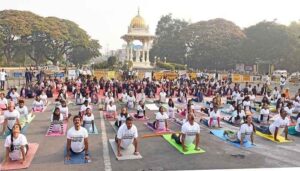 ನಗರದ ಕೋಟೆ ಆಂಜನೇಯ ಸ್ವಾಮಿ ದೇವಸ್ಥಾನದ ಮುಂಭಾದಲ್ಲಿ ಒಡನಾಡಿ ಸೇವಾ ಸಂಸ್ಥೆ ಆಯೋಜಿಸಿದ್ದ 18ನೇ ಅಂತಾರಾಷ್ಟ್ರೀಯ ಯೋಗ ಕಾರ್ಯಕ್ರಮ ಯೋಗ ಸ್ಟಾಪ್ ಟ್ರಾಫಿಕಿಂಗ್ ಮಾನವೀಯ ಸಮತೆಗಾಗಿ ಒಂದು ದಿನ- ಒಂದು ಧ್ವನಿ, ಜಾಗೃತಿ ಕಾರ್ಯಕ್ರಮದಲ್ಲಿ ಕರ್ನಾಟಕ ರಾಜ್ಯ ಮಹಿಳಾ ಆಯೋಗದ ಅಧ್ಯಕ್ಷೆ ಡಾ.ನಾಗಲಕ್ಷ್ಮೀ ಚೌಧರಿ ಯೋಗಾಸನ ಮಾಡುವ ಮೂಲಕ ಜನಾಂದೋಲನ ಜಾಗೃತಿ ಕಾರ್ಯಕ್ರಮಕ್ಕೆ ಚಾಲನೆ ನೀಡಿದರು.