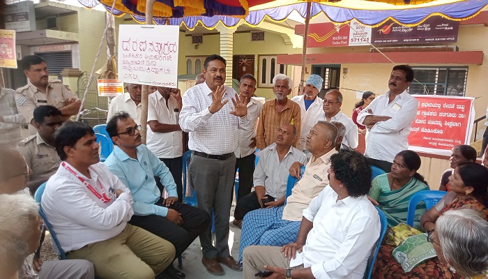 ಮೈಸೂರು: ಜಿಲ್ಲೆಯ ಸರಗೂರು ಅಂಚೆ ಕಚೇರಿಯಲ್ಲಿ ನಡೆದಿರುವ ಭಾರೀ ಹಣ ವಂಚನೆ ಪ್ರಕರಣಕ್ಕೆ ಸಂಬಂಧಿಸಿದಂತೆ ಅಂಚೆ ಇಲಾಖೆಯ ಮೇಲ್ಪಟ್ಟ ಅಧಿಕಾರಿ ಪೋಸ್ಟ್ ಸೀನಿಯರ್ ಸೂಪರ್ ಡೆಂಟೆಂಟ್ ಹರೀಶ್ ಸ್ಥಳಕ್ಕಾಗಮಿಸಿ ಪರಿಸ್ಥಿತಿಯನ್ನು ಪರಿಶೀಲಿಸಿ, ಗ್ರಾಹಕರೊಂದಿಗೆ ಮಾತನಾಡಿ ಕ್ರಮದ ಭರವಸೆ ನೀಡಿದ ಬಳಿಕ ಗ್ರಾಹಕರು ನಡೆಸುತ್ತಿದ್ದ ಪ್ರತಿಭಟನೆ ನಾಲ್ಕನೇ ದಿನಕ್ಕೆ ಗು ಅಂತ್ಯಗೊಂಡಿದೆ.
