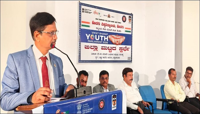ಕೊಡಗು ವಿಶ್ವವಿದ್ಯಾನಿಲಯದ ಜ್ಞಾನ ಕಾವೇರಿ ಆವರಣದಲ್ಲಿ ಯುವ ಸಬಲೀಕರಣ ಮತ್ತು ಕ್ರೀಡಾ ಇಲಾಖೆ, ಭಾರತ ಸರ್ಕಾರ ಹಾಗೂ ರಾಷ್ಟ್ರೀಯ ಸೇವಾ ಯೋಜನೆ ಘಟಕದ ಸಂಯುಕ್ತಾಶ್ರಯದಲ್ಲಿ ವಿಕಸಿತ ಭಾರತ ಯುವ ಸಂಸತ್ತು 2026 ಅಡಿಯಲ್ಲಿ ಹಮ್ಮಿಕೊಂಡಿದ್ದ ಜಿಲ್ಲಾ ಮಟ್ಟದ ಭಾಷಣ ಸ್ಪರ್ಧೆ ಕಾರ್ಯಕ್ರಮ ಉದ್ಘಾಟಿಸಿ ಅವರು ಮಾತನಾಡಿದರು.