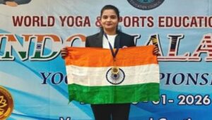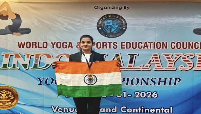 ಕೆ.ಆರ್.ನಗರ(ಜಿಟೆಕ್ ಶಂಕರ್): ಮಲೇಷಿಯಾದ ಕೌಲಾಲಂಪುರದಲ್ಲಿ ಜನವರಿ 17 ರಿಂದ 20 ರವರೆಗೆ ನಡೆದ 2026ನೇಸಾಲಿನ ಇಂಡೋ ಮಲೇಷಿಯಾ ಅಂತರ ರಾಷ್ಟ್ರೀಯ ಮಟ್ಟದ ಯೋಗಾ ಚಾಂಪಿಯನ್ ಶಿಪ್ ನಲ್ಲಿ ಪಟ್ಟಣದ ಆಂಜನೇಯ ಬಡಾವಣೆಯ ನಿವಾಸಿ ಗೀತಾಂಜಲಿಮಣಿಕಂಠ ಪ್ರಥಮ ಸ್ಥಾನ ಪಡೆಯುವುದರೊಂದಿಗೆ ಚಿನ್ನದ ಪದಕಕ್ಕೆ ಭಾಜನರಾಗಿದ್ದಾರೆ.